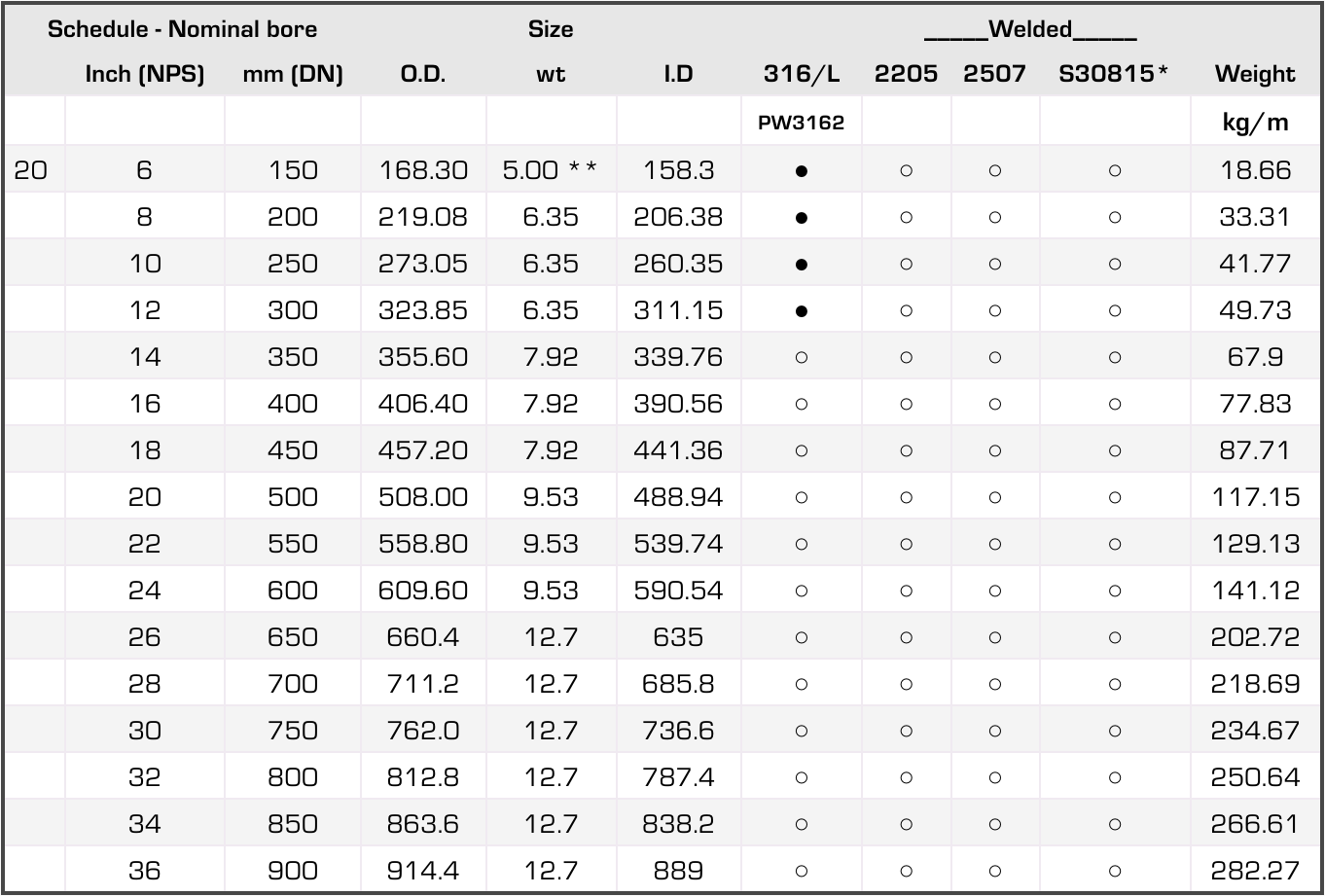We are now locally stocking 316L Schedule 20 Stainless steel ASTM A312 Pipe in most commonly used diametres for your water bore casing requirements. Other sizes and grades are available on a mill production basis via our established global supply chain.